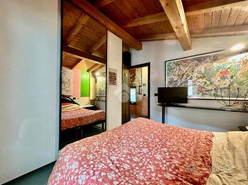 Tramite delle scale interne raggiungiamo la zona notte composta da una camera matrimoniale con accesso al terrazzo, una camera singola e un bagno finestrato con doccia.