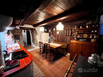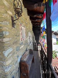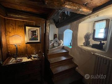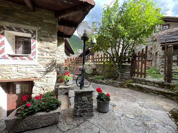 Valsavarenche. In frazione Tignet, a poco più di 1650 mt di altitudine, in questo piccolo borgo immerso nella natura, L'immobile in vendita è disposto su più livelli. Una piccola rampa di scale ci conduce all'ingresso con un balcone in legno che si affaccia nel borgo del paese. Un piccolo disimpegno, con rivestimento in legno, mantenendo il materiale originale dell'epoca, rendono subito piacevole l'ingresso. Si accede al salotto, sovrastato dall'imponente camino in pietra, particolare per la sua lavorazione, mentre il legno delle travi a vista e del rivestimento, rendono caldo e accogliente questo ambiente.Da una porta si può accedere direttamente all'area esterna, un grazioso cortiletto reso gradevole dalle numerose piante, molto comodo per pranzare fuori e godere delle giornate soleggiate. Da questo livello, si accede al quello inferiore per passare alla cucina, mentre invece si accede a quello superiore per passare alla zona notte. La cucina, anch'essa in tema con il resto della casa, è in muratura con piano a induzione, anche da qui c'è l'accesso diretto all'area esterna. Al piano superiore, ultimo livello, la camera da letto matrimoniale, sovrastata dal legno restaurato, nei minimi dettagli, comprensivo di arredo particolari sempre in tema con quella che è l'abitazione, ovvero la storicità del suo borgo .Due bagni, comodi e ristrutturati con materiali particolari come la pietra. Abitazione rara per la sua particolarità. A pochi passi un comodo parcheggio auto comunale.