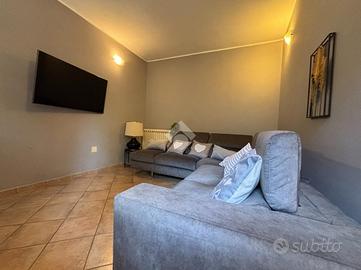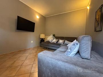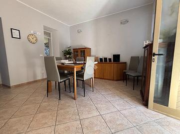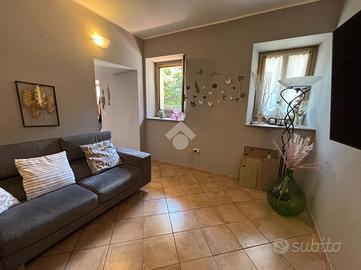 Al piano terra una sala, un soggiorno con una cucina ed un bagno. Al piano primo due camere letto con un bagno per un totale di ca 100 mq