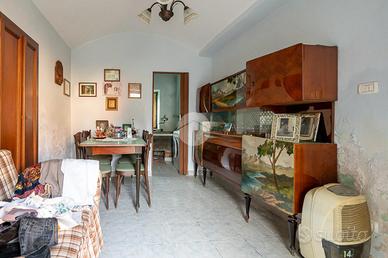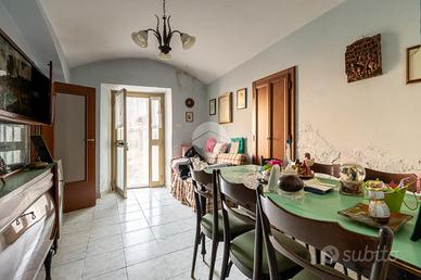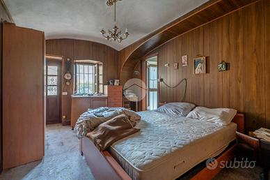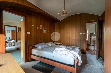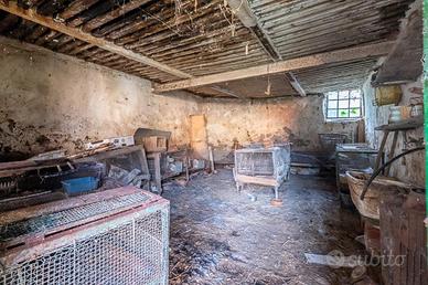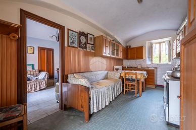 Al piano terra troviamo un ampio disimpegno, bagno, cucina e soggiorno. Attraverso scala in legno interna saliamo al piano primo in cui vi è uno spazio adibito a locale sgombero, una camera e tutto il sottotetto. L'immobile risale alla seconda metà dell'800. Nel corso dei decenni sono stati fatti dei lavori e degli ampliamenti come il box costruito negli anni '80. La casa è fornita poi di ambienti al piano terra adibiti un tempo a stalla e pollaio e un ampio portico. Troviamo anche una cantina seminterrata con caratteristica volte a botte.