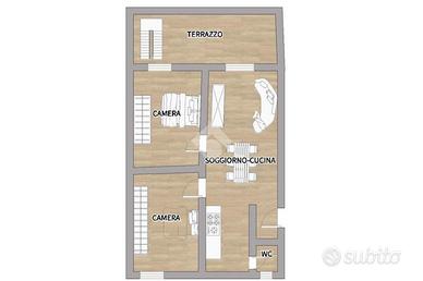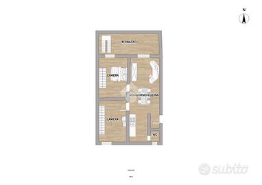 Dal terrazzo si accede ad un monolocale di circa 35 mq, completo di bagno e soppalco, perfetto come spazio indipendente per ospiti, studio o investimento.