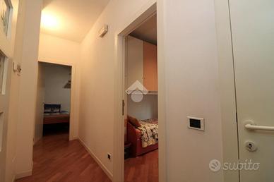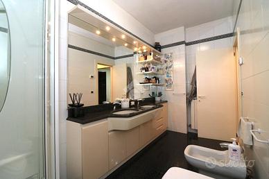 Completa la zona uno spaziosissimo bagno finestrato che si sviluppa in lunghezza, dotato di box doccia.