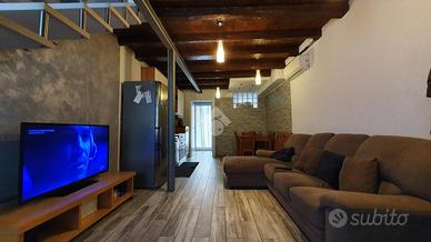 BORGO ROMA Nel cuore del quartiere, in una via interna e comoda a tutti i servizi di primaria e secondaria necessità, ti proponiamo questa casa in linea su due livelli con ingresso indipendente. Al piano terra troviamo un soggiorno con cucina a vista dalla quale possiamo accedere ad uno spazio esterno piastrellato ad uso promiscuo ed un primo bagno finestrato. Il piano sopra invece ospita la zona notte composta da due camere da letto ed un secondo bagno cieco. L'immobile è stato recentemente ristrutturato, sono stati sostituiti gli impianti, gli infissi e la pavimentazione del piano terra. Il riscaldamento è autonomo ed è presente la climatizzazione. PLUS: non ci sono spese condominiali.
