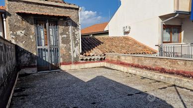 A pochi passi dal centro di Viagrande, su strada che interseca le vie del centro storico. La via Don Bosco, ben collegata al cuore del paese, offre la possibilità di raggiungere i servizi di prima necessità entro 500 metri, tra cui la zona di Piazza Urna con lo storico Bar Urna, l'ufficio postale, l' Istituto di Credito, pizzerie, studi medici, ortofrutta e minimarket. Il contesto, così come il centro storico, è stato edificato tra gli anni '30 e '60 con costruzioni indipendenti e piccoli condomini a schiera tipiche dell'epoca. L'immobile: indipendente al piano terra edificata in data antecedente al 1967 con ingresso su camera. La cucina comoda, il soggiorno di mq 27, bagno e lavanderia oltre al sottoscala, a completare gli spazi interni di casa. A livello dell'abitazione, un ampio cortile con giardino per una metratura di 119 mq, dal quale, tramite scala, si ha l'accesso al terrazzo sovrastante di copertura per un totale di mq 28 con vista Etna, oltre ad un vano con altezza di ml 3,45 con affaccio sulla strada di accesso, via Don Bosco. Le condizioni son da ristrutturare, riscaldamento assente, infissi in legno monovetro ed alluminio monovetro con inferriate anti intrusione, impianti originari. Son, inoltre, presenti luci di emergenza ed un'autoclave da 600 litri. Per ulteriori informazioni o per fissare un appuntamento contattaci o vieni a trovarci in via Lavina 347, Aci Sant'Antonio!