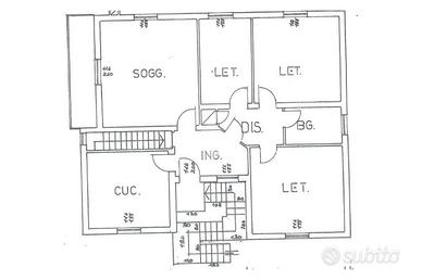 COSA SAPERE SULL'IMMOBILE: area totale di mq. 900. Piano primo: ingresso, soggiorno con balcone, cucina abitabile, 3 camere da letto e bagno. Piano terreno: servizi per mq. 80, oltre a mq. 30 di garage.