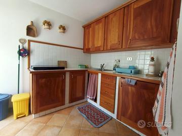 Piano terra: cucina con sala da pranzo, una camera da letto, un bagno e un comodo ripostiglio.