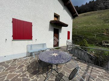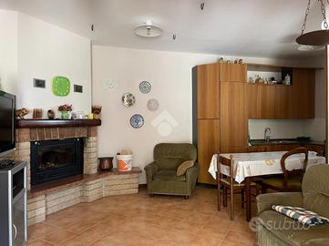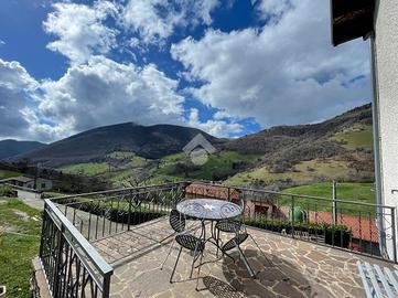 Al piano primo troviamo la seconda unità immobiliare composta da soggiorno cucina open space con camino a legna ed accesso al terrazzo, disimpegno, camera matrimoniale, camera singola con accesso al balcone e bagno finestrato con vasca. Completano la soluzione fienile adicente all'abitazione e terreno agricolo di 30.000mq.