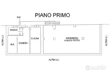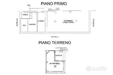 Centralissima al paese Casetta indipendente con parte abitativa su un unico livello al piano primo, composta da cucina, camera, cameretta, disimpegno, locale di sgombero e bagno.