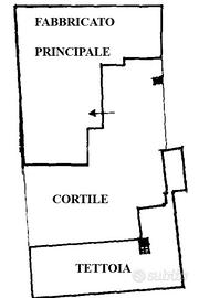 Ampio cortile di circa 600 mq. dove al fondo troviamo una tettoia e vari altri locali con una superficie di oltre 100 mq. (tra l'altro quest'ultima già con progetto per abitazione).