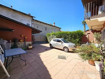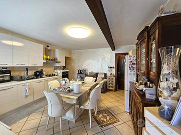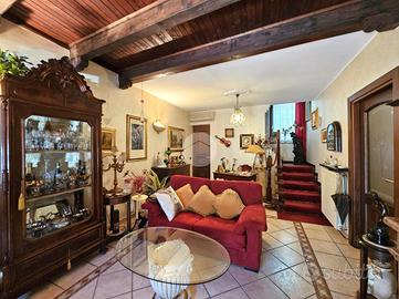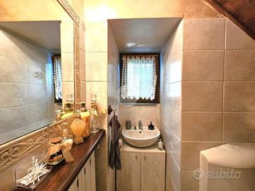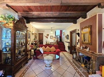 VISCHE: Casa indipendente, completamente ristrutturata, con cortile privato sul fronte e sul retro. L'abitazione è disposta su due livelli collegati tramite scala interna. La zona giorno situata al piano terra dispone di cucina abitabile e ampio soggiorno con camino. Sullo stesso livello è presente una comoda cantina adibita a lavanderia e un piccolo bagno di servizio. Il piano superiore è costituito da un ampio disimpegno, tre camere, due bagni con doccia e vasca e sfogo esterno sul balcone. Tutti gli infissi sono in legno con doppi vetri e gelosie. Il riscaldamento della casa è alimentato a metano tramite radiatori con caldaia a condensazione. L'unità immobliare viene completata da una tettoia ad uso deposito e autorimessa ubicata sul fronte. La buona distribuzione degli ambienti interni consente ulteriori personalizzazioni.