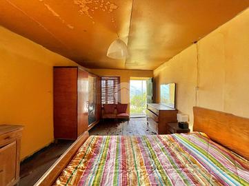 La prima porzione è composta dalla cucina abitabile con stufa a legna e dalla relativa dispensa al piano terreno; tramite la scala interna si può accedere al piano primo, composto dalle due camere da letto, collegate al balcone privato, e dal bagno con doccia e boiler elettrico.