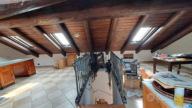 Casa libera su 3 lati di cui uno su giardino privato di circa 200 mq su cui insiste un garage ed un magazzino (con piccolo bagno) La casa si sviluppa su 2 piani abitabili, al piano terreno ampia cucina, una cameretta ed un bagno lavanderia. Si accede ai piani superiori attraverso una scala interna centrale che sbarca su un pianerottolo che da accesso ad un grande camera da letto, ad una seconda camera da letto con cabina armadio ed ad un bagno con doccia. Dalla camera con cabina armadio si accede alla mansarda "open space" non abitabile (ci si sta comodamente in piedi) con 4 finestre "velux" con travi in castagno a vista. Inoltre, nel piano interrato c'è una cantina con piccola finestra che apre sul cortile. L'immobile è dotato di vespaio, che contribuisce a garantire un migliore isolamento e salubrità degli ambienti. I serramenti in legno sono provvisti di vetrocamera, dotati di grate antintrusione, come la porta di ingresso al piano terreno. La casa è stata ristrutturata nel 1998, nuovo impianto elettrico, idrico e riscaldamento con caldaia a metano a condensazione (recentemente sostituita). Qualche anno fà è stato fatto un lavaggio delle tubazioni dell'intera rete di termosifoni. Il tetto è antisismico, completamente rifatto nel 2004 C'è un impianto fotovoltaico da 3kw installato nel 2013, pertanto nella cucina è stato realizzato un un collegamento elettrico con interruttore differenziale dedicato per la sola piastra a induzione, ma è possibile ripristinare il collegamento al gas metano. È presente una canna fumaria in inox incassata nella muratura della cucina per la stufa a legna. I pavimenti del piano terreno sono in cotto smaltato blu, al primo piano tutti i pavimenti sono in palchetto di rovere, il pavimento del bagno è in piastrelle di travertino, la scala che collega la mansarda è in ferro con gradini in massello di legno ed il pavimento della mansarda è in gres porcellanato. La casa è collegata alla fognatura. Nella frazione è presente la fibra. La