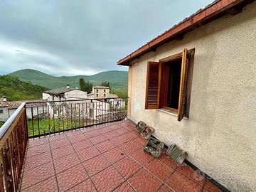 Al secondo piano troviamo un ampio disimpegno servito da terrazzo panoramico con vista sulle montagne circostanti di 10 mq ca e una camera matrimoniale.