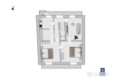 L'indipendente di circa 150.00 mq, si sviluppa su due elevazioni: al piano terra troviamo il garage ed il magazzino con accesso direttamente da via Sciarelle; al piano primo troviamo tre vani con annessi accessori e in comunicazione con il piano sovrastante si accede ad una terrazza panoramica.