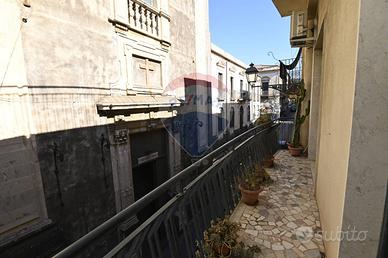 Nel Centro Storico Barocco di Acireale, precisamente in Via Galatea n° 180 (davanti la Chiesa di San Camillo) appartamento di oltre 100 Mq di 7 locali al primo piano di una palazzina indipendente così composto: da un ingresso a disimpegno si accede all'ampia e luminosa sala da pranzo (locale doppio), accanto la camera da letto matrimoniale, percorrendo il corridoio si acceda alla cucina abitabile (locale doppio) alla quale si può arrivare direttamente anche dalla sala da pranzo, proseguendo per il corridoio si accede ad altre 2 comode camere da letto e a due bagni. Dalla cucina si accede a un terrazzino a livello di 35 Mq che permette desinare all'aperto nella bella stagione.