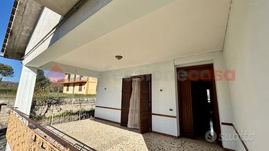 Piano terra: portico, ingresso, ampio salone, cucina con camino, tre camere da letto, bagno e balcone;