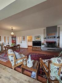 NOSTRA ESCLUSIVA PROFESSIONECASA: A 12 minuti da Arezzo, proponiamo in vendita una casa indipendente di 236 mq libera su 4 lati con ampio giardino. La villa è composta da una zona giorno a piano terra caratterizzata da un ampio ingresso, luminoso soggiorno doppio con camino, sala da pranzo con cucinotto, taverna con ulteriore canna fumaria e ampio servizio con doccia e finestra. Al primo piano si trova la zona notte composta da tre camere matrimoniali e una doppia oltre un servizio con doccia (appena ristrutturata) e finestra. L'immobile è dotato di una terrazza abitabile e di riscaldamento autonomo. La sua classe energetica è ottima anche grazie anche al fatto che è dotata di pannelli fotovoltaici. Si accede alla proprietà tramite due ingressi indipendenti dotati entrambi di cancello elettrico. Il primo cancello porta al giardino e ad una tettoia (utilizzata come deposito legna) dove è possibile parcheggiare varie auto. Nel retro dell'abitazione si trova un'ampia zona pavimentata utilizzata come porticato e quattro cantine che servono come rimessaggio. Dal secondo ingresso si può accedere alla proprietà per parcheggiare le auto al coperto nei quattro garage presenti. La strada per arrivare all'immobile è completamente asfaltata. RIF. VL103