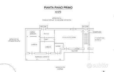 Il primo piano si compone di un ampio soggiorno con cucina living, quattro camere da letto, due bagni di cui uno completo di lavanderia e un grande terrazzo che dona luminosità e spazio all'abitazione. Recentemente sono stati eseguiti interventi di ammodernamento con rifacimento dell'impianto elettrico e sostituzione degli infissi, che ora sono in PVC con doppio vetro.