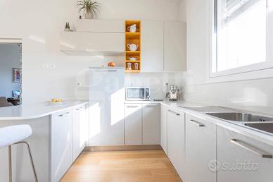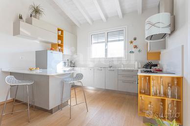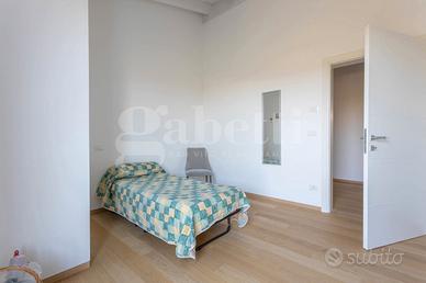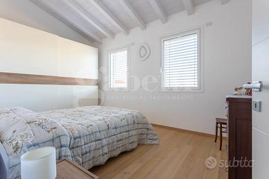 Le finiture sono di alto livello, basti pensare che i pavimenti sono realizzati in listoni di rovere, i serramenti in PVC con triplo vetro, completi di veneziane elettrificate e zanzariere su tutte le aperture.