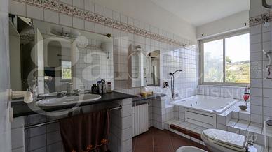 Completano la proprietà: un ampio locale garage posto al piano seminterrato di circa 60 mq, terrazzo di copertura pavimentato e panoramico accessibile mediante due scale a chiocciola e ampio spazio esterno circostante di circa 650 mq, in parte pavimentato e attrezzato con patii e in parte adibito a giardino. Troviamo inoltre le seguenti dotazioni: impianto di riscaldamento autonomo, impianto di climatizzazione, predisposizione per il gas di città, camino, forno a legna esterno.