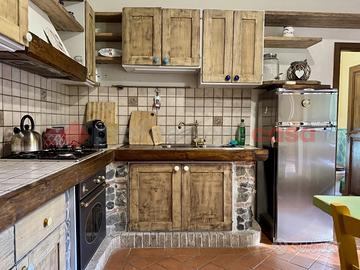 Al piano terra si trova la zona giorno con camino a legna, una cucina accogliente e un bagno. Gli ambienti sono curati nei dettagli con finiture tipiche toscane: pavimenti in cotto e parquet, pietra a vista e arredi in stile rustico che valorizzano l'atmosfera calda e autentica della casa.