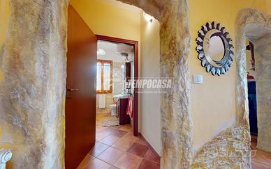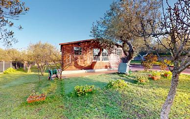 Li Mucci, zona Bancali. Proponiamo luminosissima casa completamente indipendente di circa 100 metri quadri, libera su quattro lati e disposta su un unico livello, composta da spaziosa sala con camino, cucina abitabile, due camere da letto - entrambe matrimoniali - bagno completo e finestrato con doccia e disimpegno. A completare, terreno circostante di totali 5000 metri quadri circa, completamente recintato, disposto su giardino di 2500 metri quadri, dotato di 85 alberi di ulivo e frutteto; comodo cortile lastricato di circa 500 mq; 50 punti luce totali; due barbecue, con forno e cucina esterna, dependance di circa 30 metri quadri, in legno e dotata di bagno. sottotetto - della stessa superficie della casa - ed utilissima cantina. La casa si presenta in buone condizioni generali: impiantistica elettrica ed idrica in perfetto stato di manutenzione, pavimentazione in cotto; infissi esterni in legno, con doppio vetro ed annessi portelloni in legno e zanzariere; porte interne in legno; placcaggi in ceramica. Anche gli esterni si presentano in discreto stato, richiedendo solo alcuni piccoli interventi di manutenzione. Dotata di pozzo con autoclave e cisterna di raccolta acque; riscaldamento con caldaia a condensazione e bombolone GPL; fossa settica; recinzione, con doppio ingresso. Posta a 170 metri dalla strada provinciale 18 e a circa 5 km da Sassari, alloggiata in zona tranquilla ma non isolata e residenziale, si presta ottimamente per chi è in cerca di assoluta indipendenza con ampi spazi verdi circostanti - Classe: F