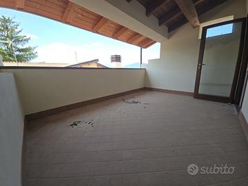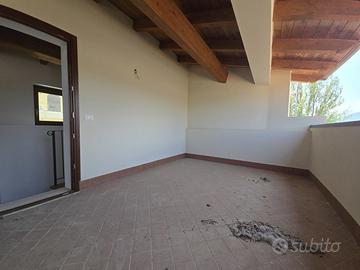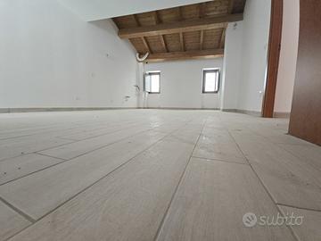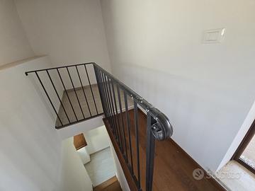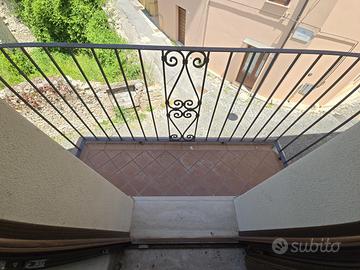 Una scala in legno ci conduce dalla zona living ad un terrazzo coperto di 25 mq ca, con splendida vista sul centro storico del paese.