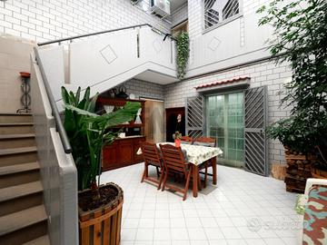 La zona notte gode inoltre di un accesso indipendente tramite scala esterna, che collega direttamente il cortile e larea parcheggio, rendendo limmobile perfetto anche per due nuclei familiari o per chi desidera una soluzione con ingressi separati.