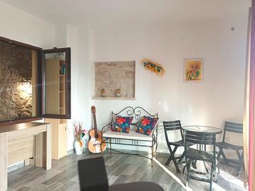 Il primo piano, destinato alla zona giorno, è composto da una camera da letto, un soggiorno con angolo cottura, un bagno, un cortile interno e una veranda, perfetta per momenti di relax all'aperto.