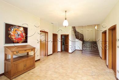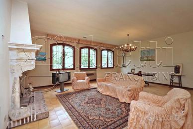 Bondeno, immersa nel verde, libera subito signorile villa indipendente su tre lati, dotata di parco piantumato esclusivo. L'immobile, di oltre 550 mq, è costituito da due distinte unità immobiliari, eventualmente accorpabili tra loro. L'abitazione principale è disposta su due livelli come segue: - Piano seminterrato di oltre 150 mq, con accessori, cantine e due ampi garage. - Piano Terra: ampio ingresso, un primo salone di 45 mq con camino, uno studio, una camera ed un bagno. - Piano Primo: salone di circa 100 mq, cucina abitabile con sala da pranzo e balcone, cinque camere da letto, quattro bagni. L'unità secondaria è disposta al Piano Terra e si compone di: ingresso indipendente, soggiorno, cucina, due camere da letto matrimoniali, studio, bagno, ripostiglio. Quest'ultima unità è facilmente accorpabile al piano terra dell'unità principale. L'immobile presenta allestimenti ancora oggi di qualità, con porte interne di pregio, parquet, scala in legno massello, camino decorato ecc.