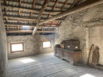 - al piano terra, entrata con sala da pranzo, soggiorno con travi antiche in noce a vista, antibagno, bagno e cantina/lavanderia;