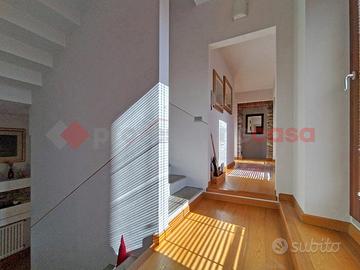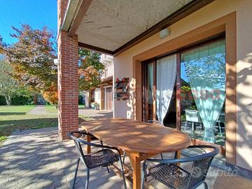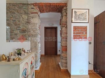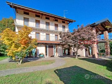 Bellissimo cascinale ristrutturato di circa 350 mq oltre accessori, circondato da giardino in piano di circa 800 mq. L'immobile è stato totalmente e finemente ristrutturato nel 2008 e si sviluppa su tre piani fuori terra, oltre cantina al piano seminterrato. Al piano terra, troviamo un ingresso su uno spazioso soggiorno con termocamino, ampia e luminosa cucina abitabile, sala da pranzo, cameretta/studio, locale tecnico/lavanderia e bagno; Al piano primo sono collocate due spaziose camere, un bagno, ampio terrazzo ed una terza camera padronale con bagno en suite e terrazzino privato; Al secondo ed ultimo piano altre due ampie camere matrimoniali, di cui una soppalcata con affaccio sulla balconata e bagno. L'immobile è stato ristrutturato, mantenendo quanto possibile gli elementi e lo stile originale, le soglie e i balconi sono in lastre di beola; Oltre al termocamino in soggiorno il riscaldamento è alimentato da una caldaia a metano e da una seconda termostufa in cucina; I serramenti sono in legno con doppio vetro e le portefinestre del piano terra e della camera principale hanno infissi e antoni a scomparsa, oltre che zanzariere dappertutto. Predisposizione per pannelli solari e videocitofono; Si completa inoltre di due accessori con uso deposito, un box doppio, un pollaio nel bellissimo giardino piantumato, con cisterna acqua per la raccolta dell'acqua piovana.