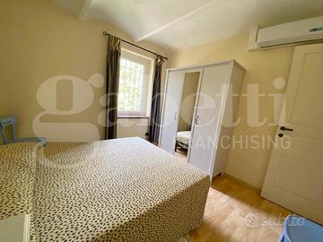 Al primo piano si trovano tre camere da letto, luminose e ben dimensionate, insieme a un secondo bagno. Il balcone in legno regala uno scorcio suggestivo sul giardino e dona ulteriore fascino all'immobile.