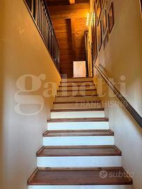 La scala in legno, elegante e scenografica, conduce al primo piano dove si sviluppa la zona notte composta da due camere, un bagno e una spaziosa camera matrimoniale con bagno privato, perfetta come suite padronale.