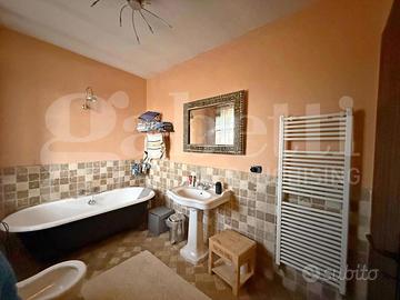 La generosa superficie interna è valorizzata da pavimenti in legno e finiture curate, che conferiscono alla proprietà un equilibrio perfetto tra tradizione e comfort contemporaneo.