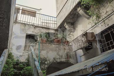 CENTRO STORICO: nella splendida cornice delle Colonne Romane e della meravigliosa scalinata virgiliana prestigioso indipendente da ristrutturare. Su due livelli con vari terrazzini a livello, al piano primo troviamo vari ambienti con antichi pavimenti in cotto napoletano, soffitti in legno e pareti semi affrescate, una cucina con camino e una scaletta interna che porta in un pozzo luce posto al piano terra. Adiacente al vano cucina vi è una scaletta che porta al piano secondo dove traviamo quattro ambienti con coperture, in parte con solaio e in parte con tettoie legno e tegole. Da uno di questi ambienti si accede ad altro terrazzo a livello. Struttura unica dalle potenziali impareggiabili.