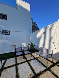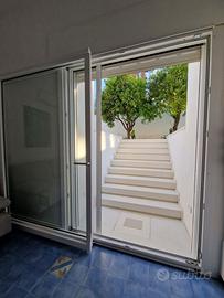 Dal salone si accede al giardino attraverso una ampia vetrata scorrevole, creando un collegamento diretto tra interno ed esterno. La scalinata è illuminata a LED, aggiungendo un tocco moderno e accogliente. All'esterno sono presenti ripostiglio, impianto di irrigazione e una pratica doccia.