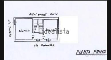 Si vende casa unifamiliare, di 150 mq, costituita da piano terra e piano primo, in via Trieste angolo Via Caboto. L'immobile presenta facciate esterne rivestite di blocchi in granito, con cortile esterno fronte strada di 80 mq c. a. Presenta doppio accesso dalle due vie; la casa risulta in medio stato di conservazione, con struttura portante sana e solida, con interventi di ristrutturazione da realizzare, molto luminosa e arieggiata, con vista sul centro paese. Classe energetica G.