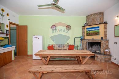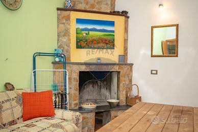 Al piano terra si trova un accogliente salone arredato, con camino e un piccolo angolo cottura, ideale per trascorrere piacevoli momenti in famiglia o con amici.