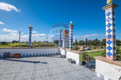 In splendida posizione tranquilla e soleggiata, presentiamo nuda proprietà di una caratteristica casa di campagna libera su quattro lati, con terreno privato di circa 3.600 mq, situata in Contrada San Cataldo, esattamente tra Grammichele e Caltagirone, in provincia di Catania.