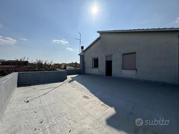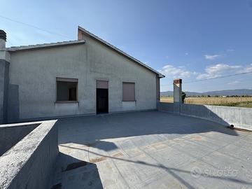 Al piano terra troviamo una cucina e un soggiorno separati, che garantiscono una buona divisione degli ambienti. La casa è dotata di due bagni e tre camere da letto, oltre a un pratico ripostiglio che aggiunge ulteriore spazio per le necessità quotidiane. Un grande terrazzo completa la soluzione, offrendo uno spazio ideale per il relax all'aperto. La proprietà include anche un garage e un magazzino, perfetti per il parcheggio e lo stoccaggio di attrezzi o altri oggetti.