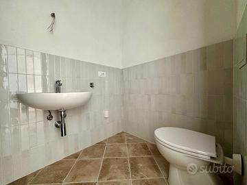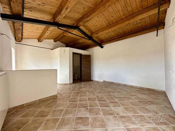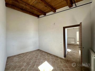Al piano terra veniamo accolti da un ampio ingresso-cucina, sogggiorno con predisposizione canna fumaria, camera matrimoniale e bagno.