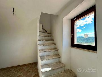 Una scala in pietra ci conduce al 1° piano dove troviamo una camera matrimoniale open space con tetto in legno a vista con vista mozzafiato e bagno.