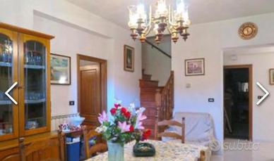 Piano primo con cucina con terrazza panoramica salotto con caminetto,disimpegno con stufa a pellet tre camere altre terrazza e bagno.