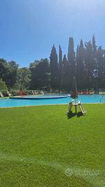 Comoda piscina con possibilità di ombrelloni e lettini gratuiti .