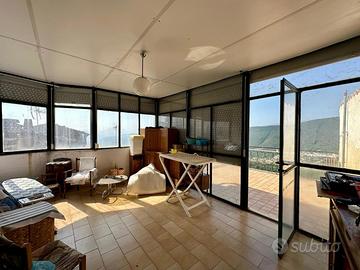 Una comoda scala ci conduce al primo piano dove troviamo due camere matrimoniali, una servita da splendida terrezza panoramica di 15 mq ca e veranda.
