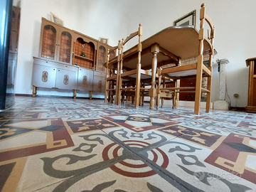 - secondo piano: ingresso, salone da pranzo con pavimento d'epoca e caminetto realizzato in marmo, angolo cottura e bagno; 2 camere da letto.