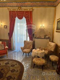 Primo piano: ampie camere da letto e un raffinato salone con soffitti affrescati e pavimenti in ceramica originale.