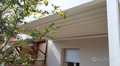 Sviluppata su due piani fuori terra di circa 145 mq calpestabili, un locale esterno di proprietà su due piani adibiti a garage e a taverna, ciascuno di 24mq. Il tutto sviluppato su una corte centrale con area verde di circa 200 mq con pergola in alluminio illuminata a led coperta da telo retrattile motorizzato di 13mq.