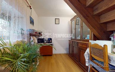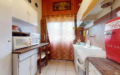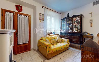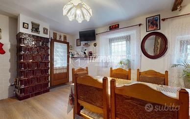 - Ingresso su ampio soggiorno, illuminato da due finestre, con angolo cottura e grande stufa a legna